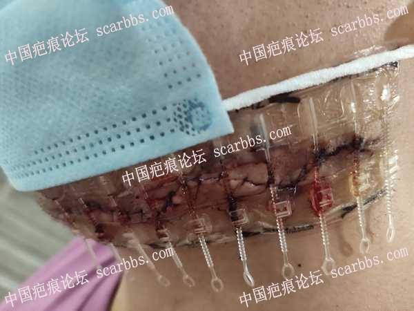 面部疤痕手术,今天第7天拆完线